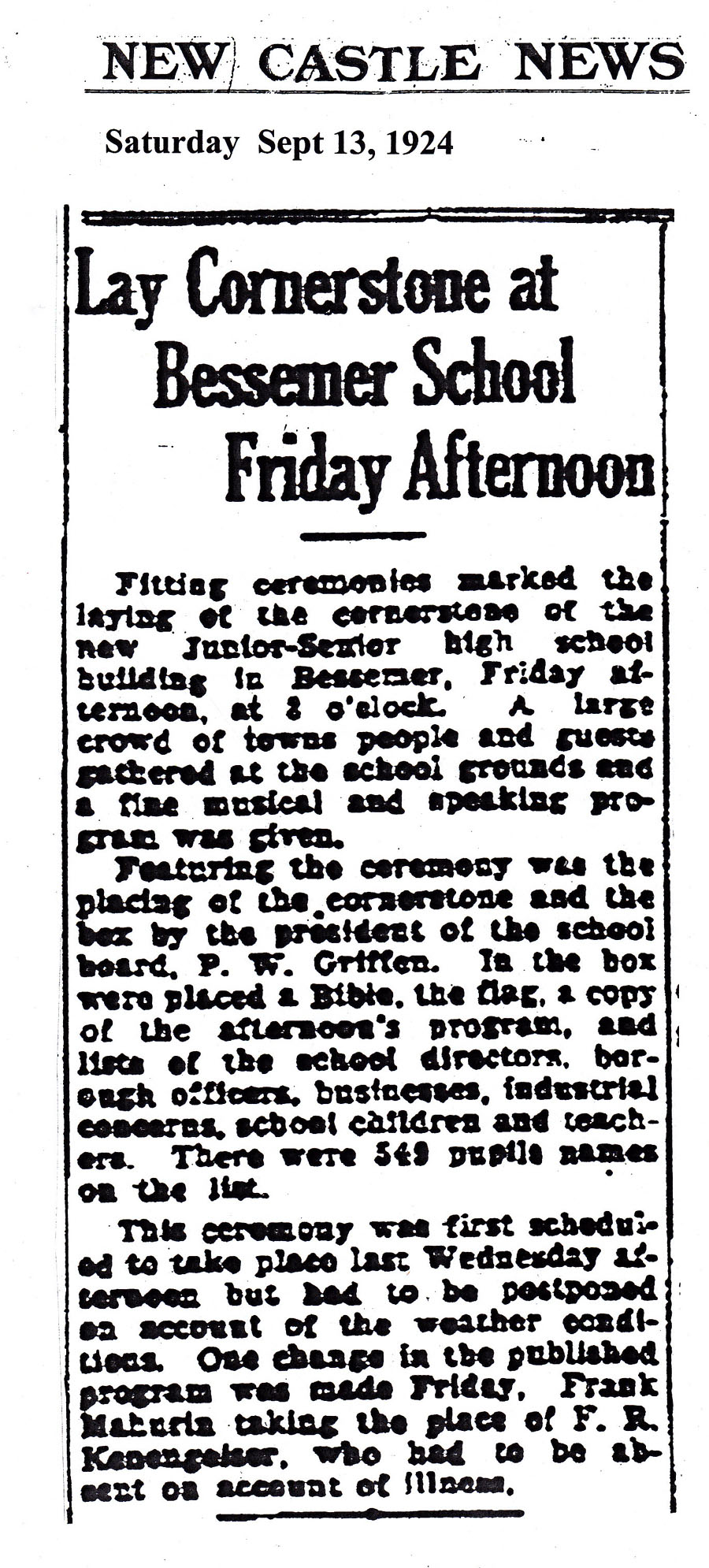 Bessemer Public Schools - Cornerstone Ceremony Comments There are currently no comments on this article. Comment Enter your comment below. Fields marked * are required. You must preview your comment before submitting it. Name * Email * Message *