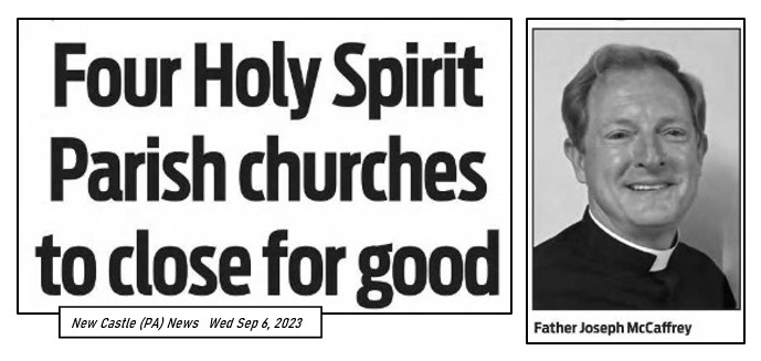 In early September 2023, after further evaluation, the Diocese sadly announced that St. Vincent de Paul along with St. Anthony Church, St James the Apostle, and St. Joseph the Worker in Lawrence County would all be closed by the end of the month. Each would have a farewell mass during the week of September 25-28. Moving forward the parish would be served by three buildings to include Mary, Mother of Hope in downtown New Castle and St. Vitus and St. Camillus.