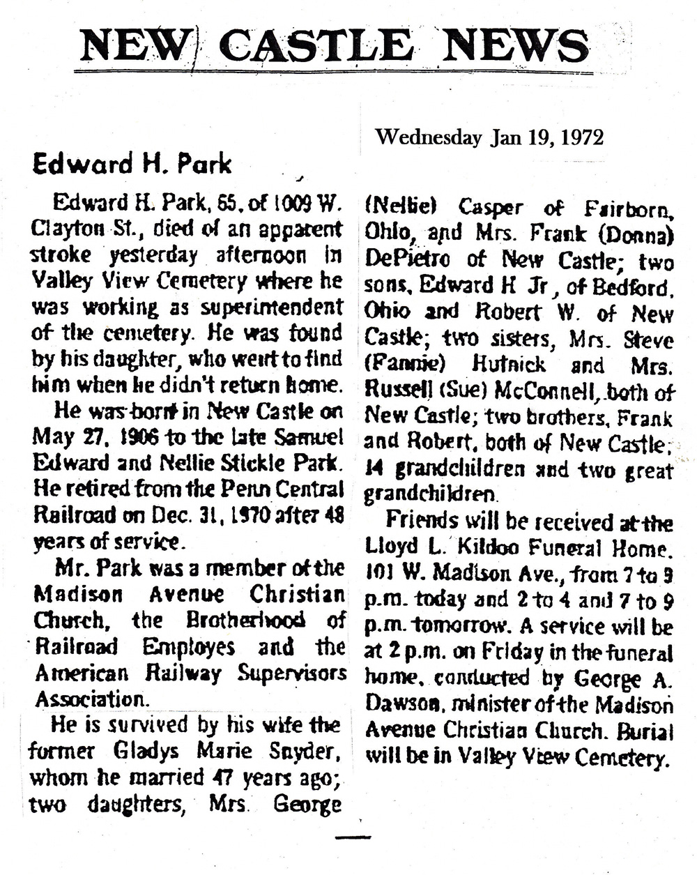 Valley View Cemetery - Edward Park Obituary Comments Joneta Burke # May 16, 2014 (4325 days ago) Hi again My grandfather Edward Mitchell was a member of the Scottish Rite. Do you know where I would find any records for this organization? I would like to see if there is any family information on his papers. Joneta Burke Comment Enter your comment below. Fields marked * are required. You must preview your comment before submitting it. Name * Email * Message *
