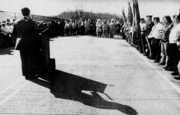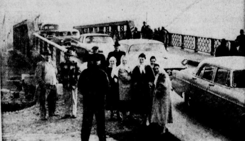 ![]() Local residents celebrate the re-opening of the Wampum Bridge. During its lengthy closure (20 months) motorists had to detour to the Koppel Bridge or the West Pittsburg Bridge. (Dec 1959) |