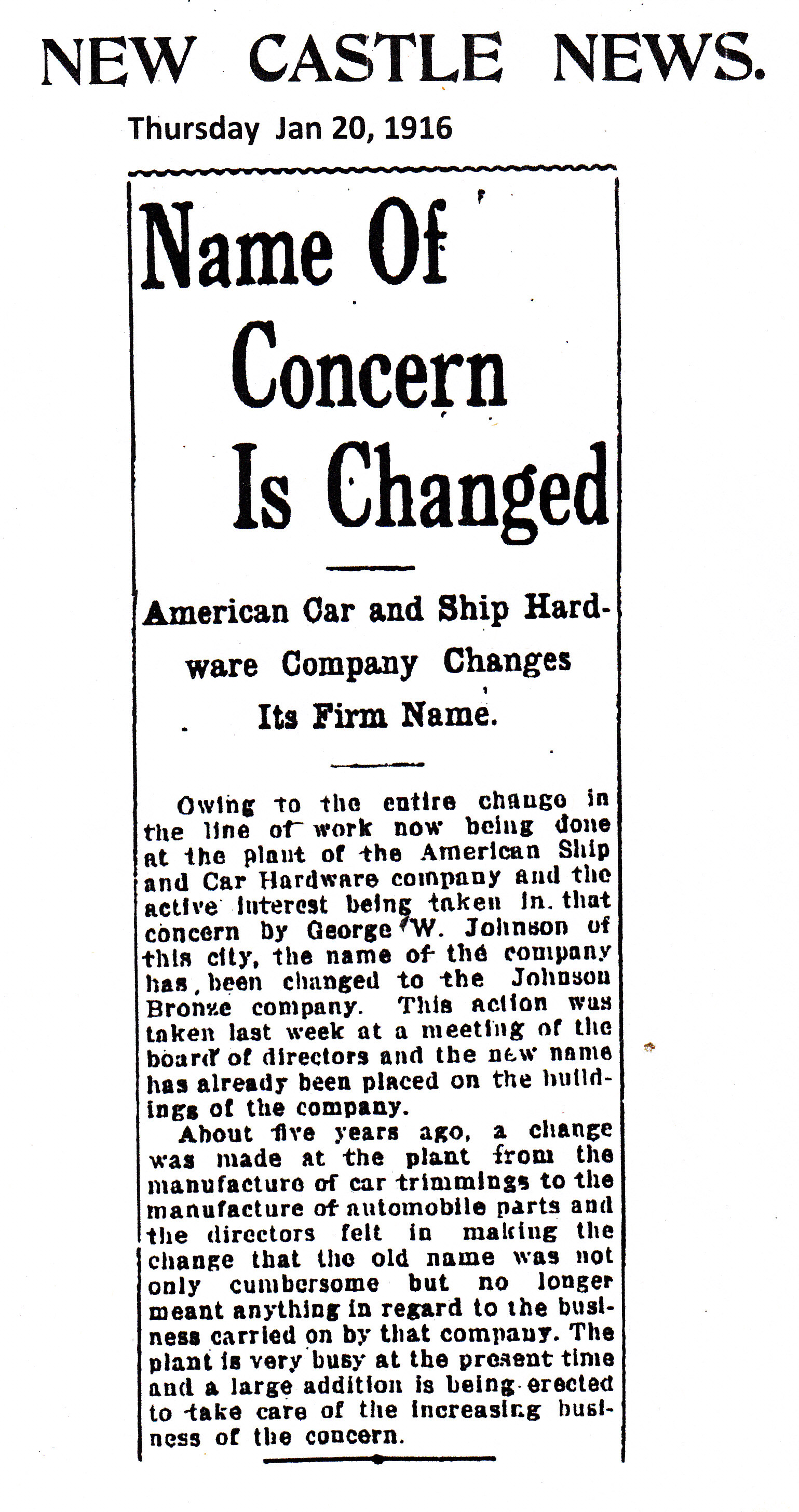 Johnson Bronze Company - Name of Concern (Article) Comments There are currently no comments on this article. Comment Enter your comment below. Fields marked * are required. You must preview your comment before submitting it. Name * Email * Message *