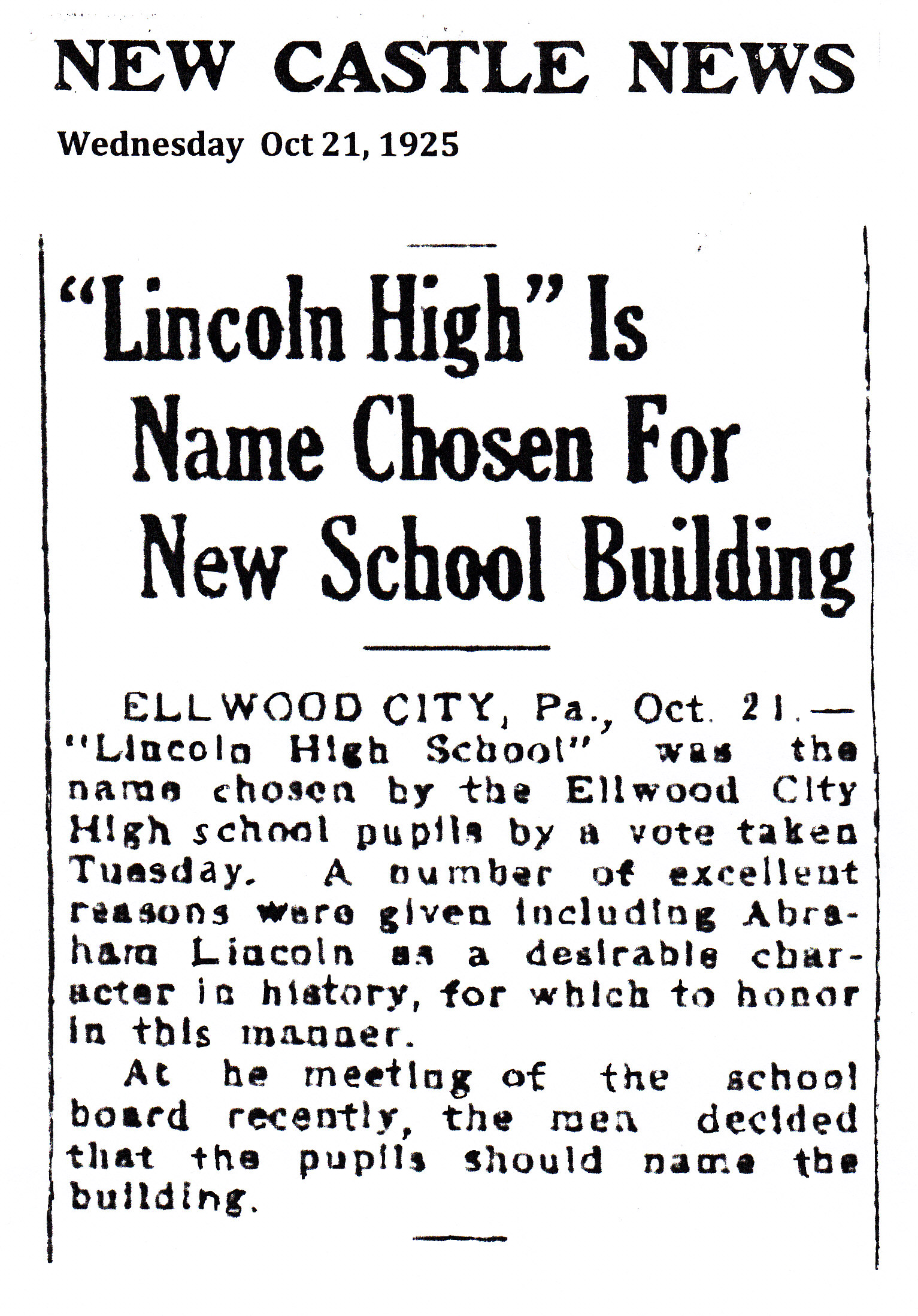 Lincoln Junior-Senior High School - Name Chosen (Article) Comments There are currently no comments on this article. Comment Enter your comment below. Fields marked * are required. You must preview your comment before submitting it. Name * Email * Message *