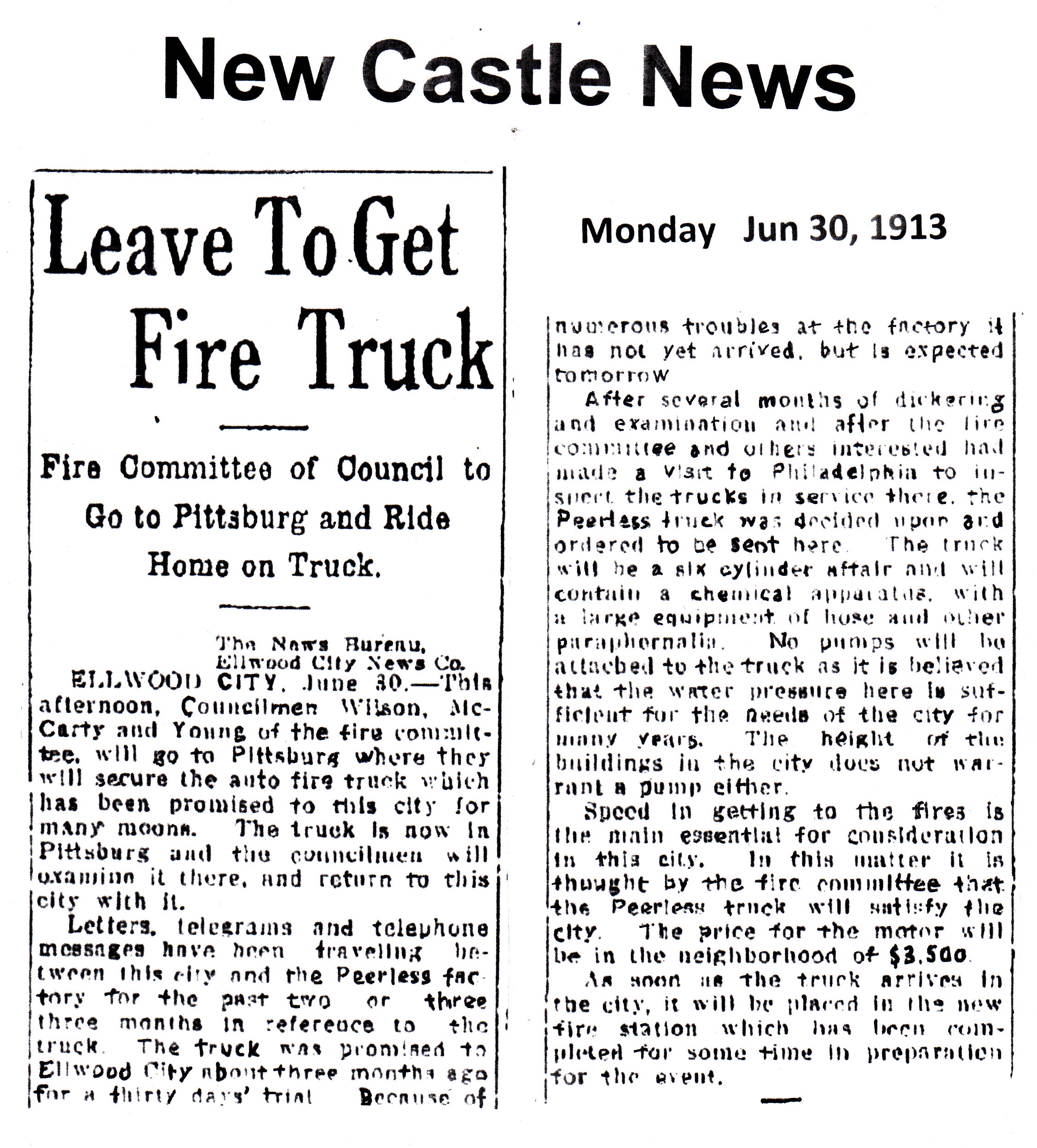 Ellwood City Fire Department - Leave to Get Fire Truck (Article) Comments There are currently no comments on this article. Comment Enter your comment below. Fields marked * are required. You must preview your comment before submitting it. Name * Email * Message *