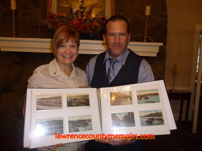 My second appearance with the Ellwood City Rotary Club took place on Thursday, October 3, 2013. It was at the Connoquenessing County Club and once again came at the invitation of Louise Carroll. I spoke for about thirty minutes about local boxing champion Emmett Rocco. I also brought along my binders of old postcards and my new glass display cases featuring various trinkets and historical items. I was accompanied by my aunt Kay Migut and my cousin Shirley Perry. I am pictured above with Alisa Hackett, the President-elect of the Ellwood City Rotary Club. |
