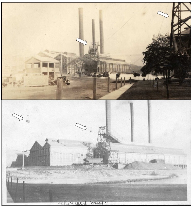 Limestone, a key ingredient in the process to manufacture Portland cement, was mined from the hillside just to the west of the plant. Huge blocks of limestone were carted by men and mules to an aerial “rope railroad,” which used gravity to transport the limestone blocks downhill to the crusher at the plant. The mules were later replaced with narrow-gauge “dinky” railroad cars and steam-powered shovels were also put in operation to help unearth the limestone.
