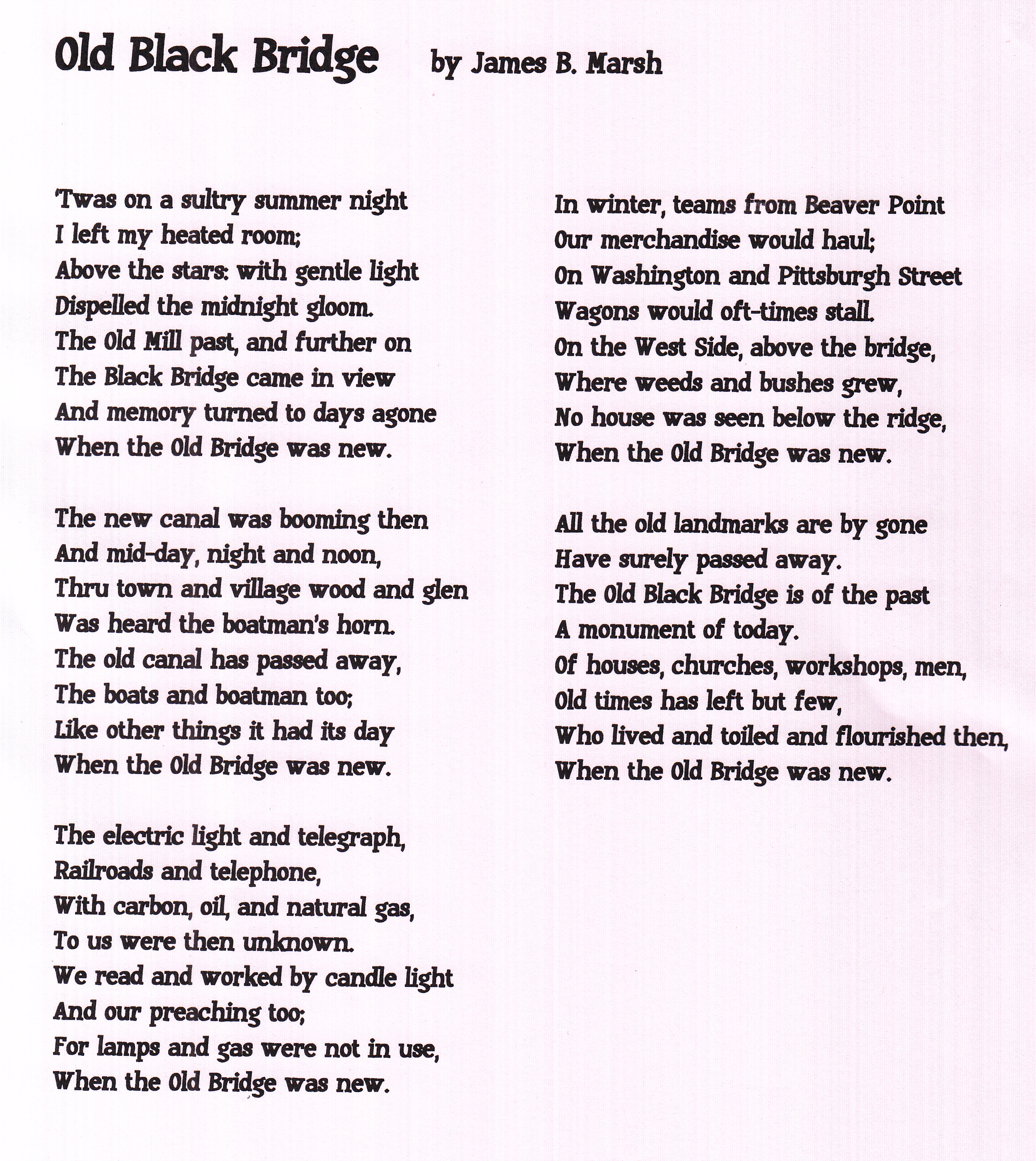 Old Black Bridge - Bridge Poem Comments There are currently no comments on this article. Comment Enter your comment below. Fields marked * are required. You must preview your comment before submitting it. Name * Email * Message *
