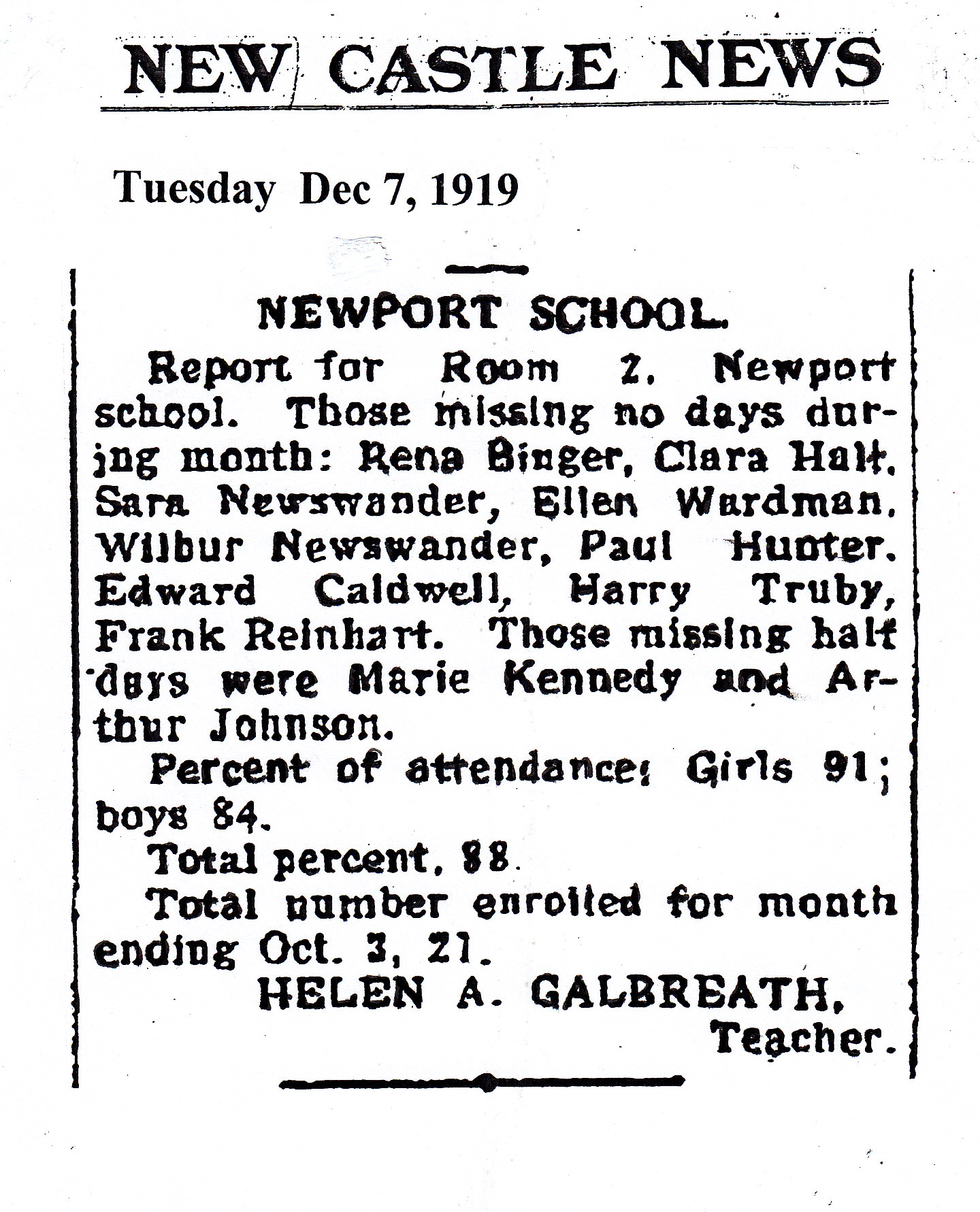 Newport School - 1919 School Report Comments There are currently no comments on this article. Comment Enter your comment below. Fields marked * are required. You must preview your comment before submitting it. Name * Email * Message *