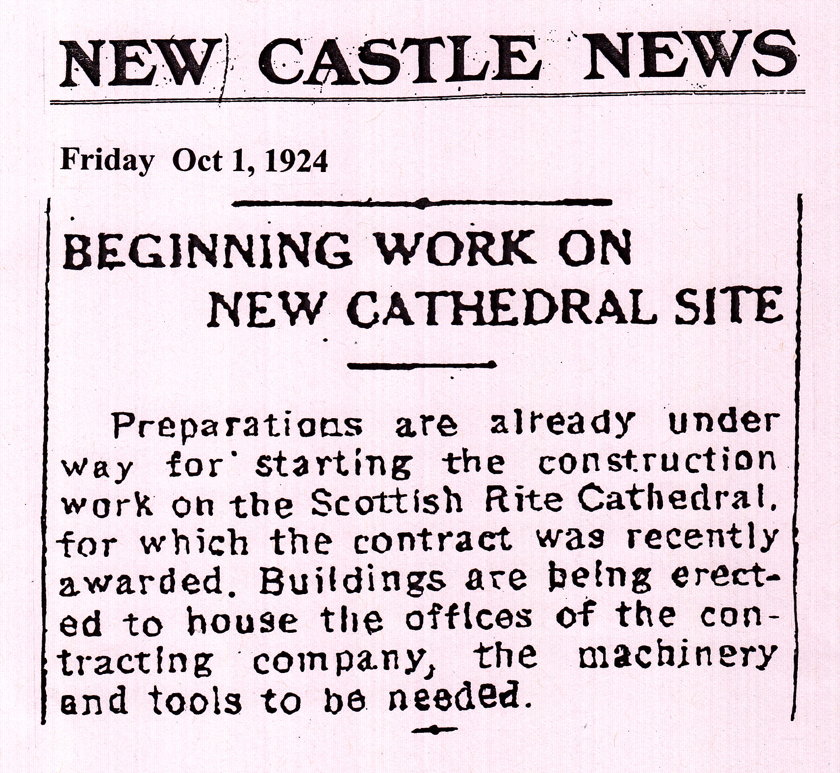 Scottish Rite Cathedral - Work Commences (Article) Comments There are currently no comments on this article. Comment Enter your comment below. Fields marked * are required. You must preview your comment before submitting it. Name * Email * Message *