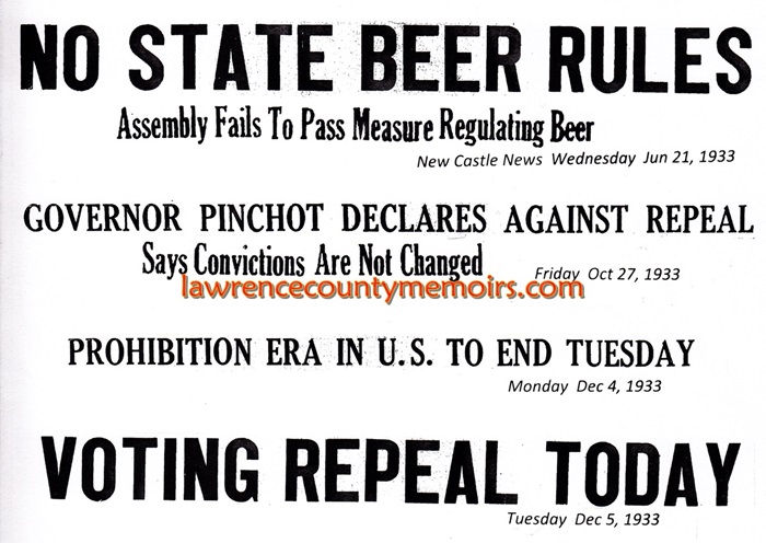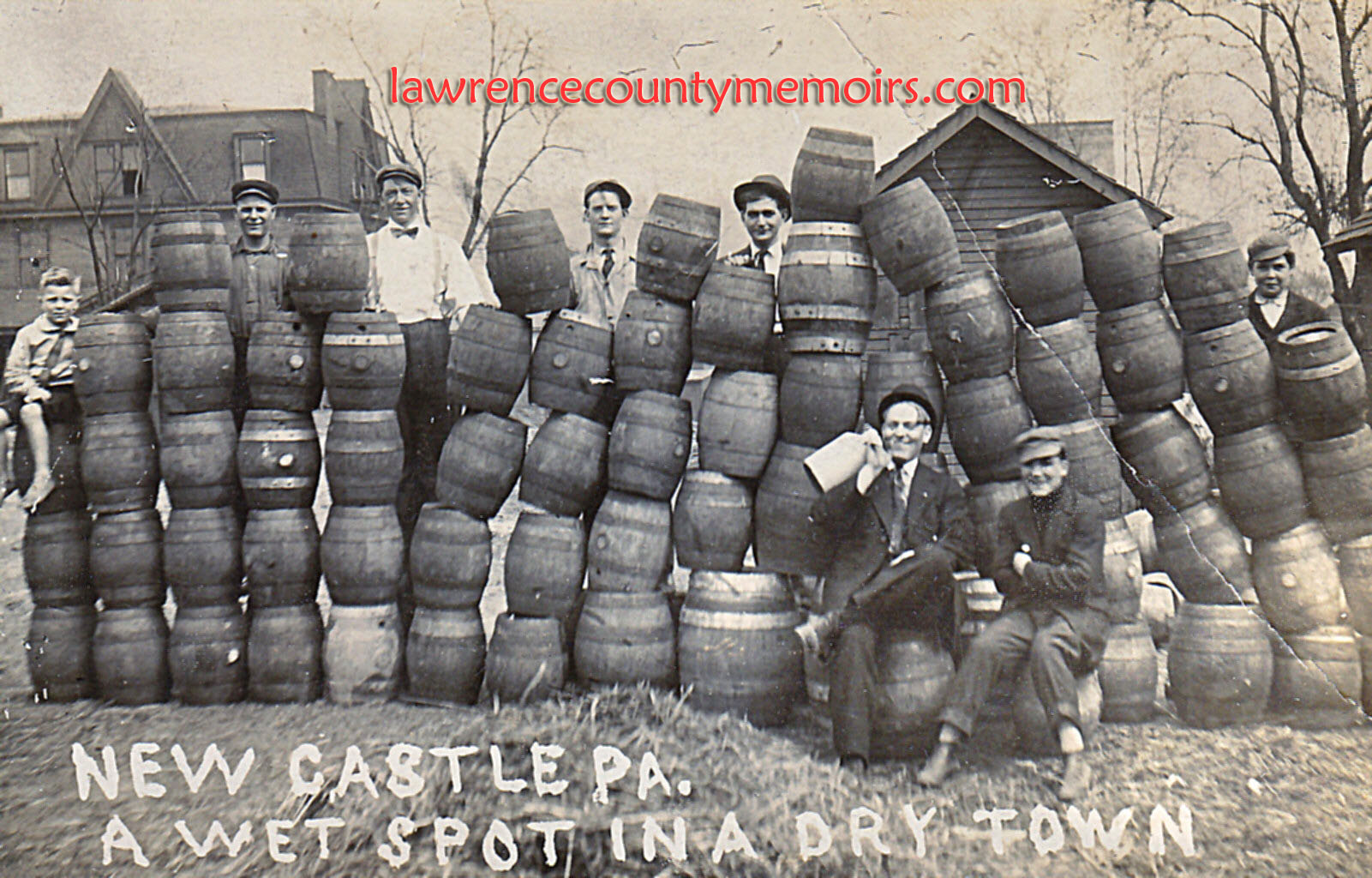 The “drys” and the “wets” had been fighting over the issue of alcohol manufacturing and consumption for many years prior to the actual enactment of nationwide Prohibition – the so-called Noble Experiment – from 1920 to 1933. The temperance movement was a popular political issue and had been throughout the entire 1800s and into the 1900s. New Castle actually became the largest “dry” city in the state when Judge William E. Porter denied all liquor licenses and banned alcohol in Lawrence County beginning in April 1911. It was not until Judge Samuel P. Emery reversed that ruling in April 1916 that alcohol was once again legal to be sold and consumed within the county. The 18th Amendment was ratified on January 17, 1920, and resulted in the prohibition on the manufacturing, importation, transportation, and sale of alcohol. It was in effect until it was repealed (with the 21st Amendment) on December 5, 1933. The change did not prevent the states or smaller municipalities from enacting their own alcohol bans, full or partial, moving forward. Even today, Pennsylvania, in particular, remains a state with a high number of restrictions on the sale of alcohol. (c1912) Full Size |