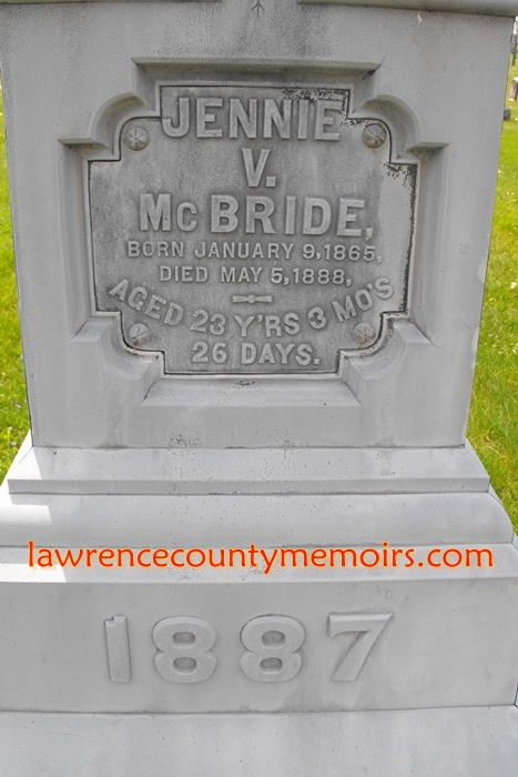 Jennie V McBride – B: 9 Jan 1865 – D: 5 May 1888